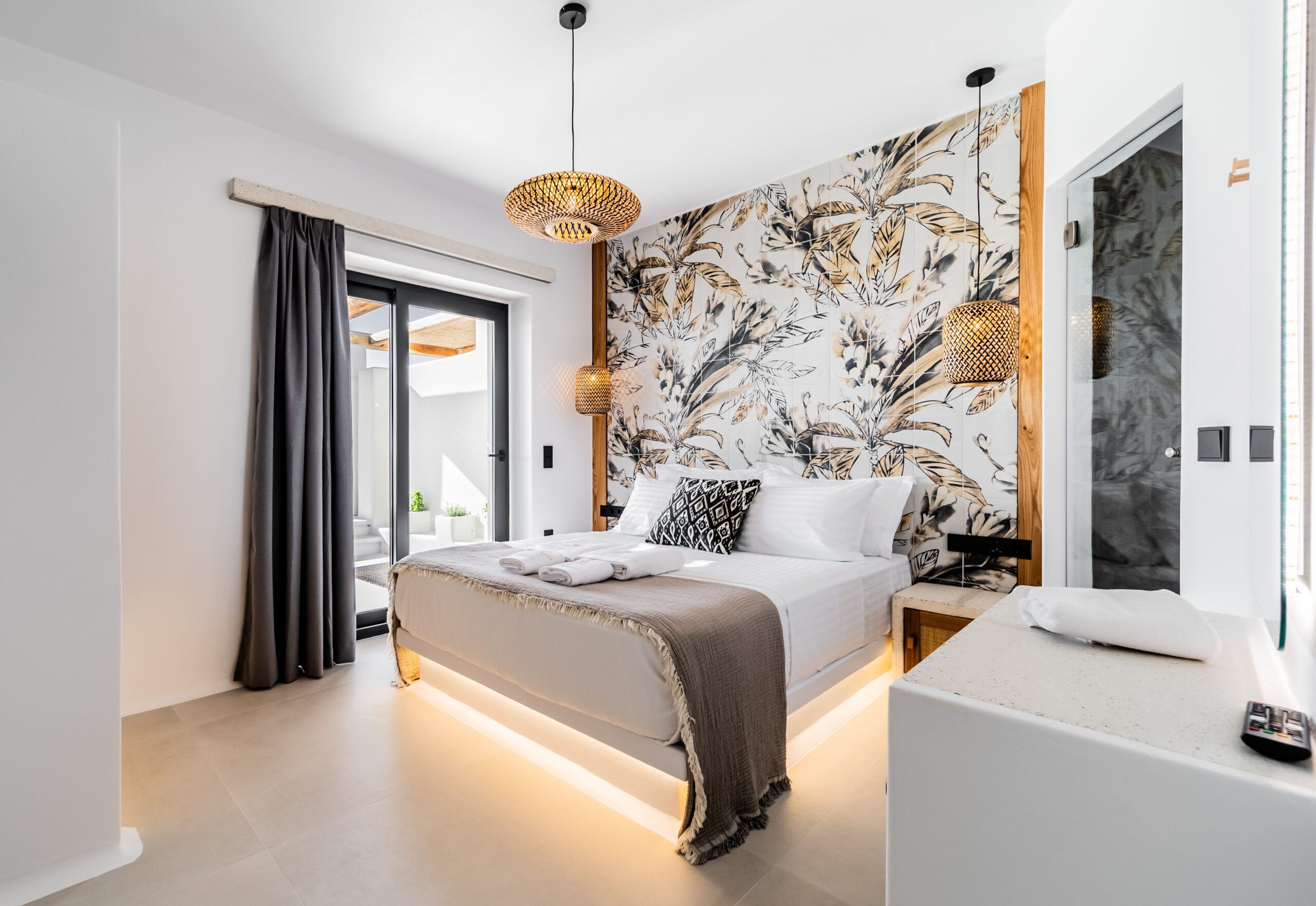 As you step into this tranquil retreat, traditional Greek whitewashed walls seamlessly blend with natural woods and soft fabrics, enveloping you in an atmosphere of timeless elegance and warmth. Gaze upon the sparkling Aegean Sea and immerse yourself in the rich tapestry of Cycladic culture, where almost everything is meticulously handcrafted, making the villa truly unique.